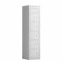 Beskrivelse af Tøjudleveringsskab 1x6 rum med lige tag og lys grå døre med greb f/hængelås