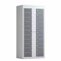 Tøjudleveringsskab, helsvejst i stål for udlevering af tøj, 2 x 400 mm med lige tag og dimension (HxBxD) 1752 x 800 x 550 mm. Tøjudleveringskabet har kabinet i lys grå farve RAL 7035 og antracit RAL 7016 døre, 2 x 11 døre i højden, og leveres komplet monteret med greb f/hængelås.