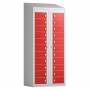 Tøjudleveringsskab 2x11 rum med skråt tag og røde døre med greb f/hængelås