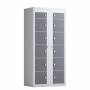Tøjudleveringsskab, helsvejst i stål for udlevering af tøj, 2 x 400 mm med lige tag og dimension (HxBxD) 1752 x 800 x 550 mm. Tøjudleveringskabet har kabinet i lys grå farve RAL 7035 og antracit RAL 7016 døre, 2 x 6 døre i højden, og leveres komplet monteret med cylinderlås.