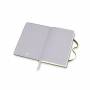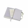 Hårdt omslag i canvas, dobbelt layout på hvert opslag både linjeret og blank, størrelse medium (11,5x18 cm), 144 sider, 2 bogmærkebånd, elastiklukning, udvidelig inderlomme, 100 gram syrefrit FSC-certificeret elfenbensfarvet papir.