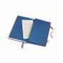 Hårdt omslag i canvas, dobbelt layout på hvert opslag både linjeret og blank, størrelse medium (11,5x18 cm), 144 sider, 2 bogmærkebånd, elastiklukning, udvidelig inderlomme, 100 gram syrefrit FSC-certificeret elfenbensfarvet papir.