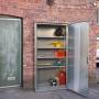 Udendørs skab er udført i galvaniseret stål. Galvaniseringen beskytter skabet mod korrosion. Udendørsskab til opbevaring af værktøj og andet udendørs. Espagnoletlåsning med cylinderlås inkl. 2 nøgler.