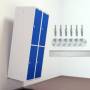 Komplet monteringssæt til ophæng af garderobeskabe på væg, tilpasset garderobeskabe med en bredde på 800 mm. Sættet indeholder et vægbeslag med en længde på 790 mm samt murplugs, 5 x 40 mm skruer og Ø90 mm galvaniserede skiver.