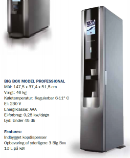. Køleren har indbygge kopdispenser, mulighed for opbevaring af yderligere 3 Big box.