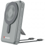 Kompakt & Kraftfuld: Verbatim Charge 'n' Go Power Bank leverer 10.000mAh pålidelig strøm i et slankt, bærbart design. Den kan oplade op til fire enheder samtidig, hvilket gør den ideel til smartphones, tablets og højttalere—perfekt til rejser, pendling, begivenheder og udendørs brug. Alsidig Dual Opladningsmetode: Nyd magnetisk trådløs opladning op til 15W for telefoner*, 5W for AirPods™ og 2,5W for Apple Watch™, plus 22,5W USB-C PD hurtigopladning via port og indbyggede kabler. MagSafe-kompatibilitet sikrer problemfri trådløs opladning for iPhones og smartwatches, mens Android-brugere drager fordel af den samme bekvemmelighed*. Indbyggede Dual Kabler: To indbyggede USB-C kabler understøtter hurtig opladning—C2 op til 22,5W og C3 op til 12W—kompatible med både iPhone og Android-enheder, hvilket eliminerer behovet for ekstra kabler. Indbygget KickStand til Håndfri Brug: For ekstra bekvemmelighed giver den indbyggede kickstand dig mulighed for at sætt