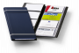 • Visitkortmappe med mat overflade og sølvfarvede striber • Med indsvejsede lommer • Til 96 visitkort i størrelsen 90 x 57 mm