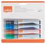 Disse ikke-permanente whiteboard markere til hverdagsbrug kan bruges p? alle ikke-por?se overflade som whiteboards, glas og emaljerede overflader. De t?rrer hurtigt og bl?kket kan let fjernes ved en t?r klud. Pennene har et smart bl?kvindue, som viser dig hvor meget bl?k, der er tilbage i pennen. P? den m?de ved du altid, hvorn?r det er tid til at skifte til en ny marker. Tilg?ngelig i en r?kke farver, s? der er en farve til alle pr?sentationsbehov. De er ideelle til skoler, kontoret og hjemme. Pakken indeholder 10 markere med hurtigtt?rrende bl?k med en skr? spids og 4 mm skrivebredde, som giver j?vne linjer p? whiteboardtavlen. Brug med et Nobo whiteboard for optimal pr?station. - Whiteboard marker med hurtigtt?rrende bl?k i klar farve, som er tydelig at se p? whiteboards - Bl?kvindue der viser, hvor meget bl?k der er tilbage - Brugbar p? de fleste ikke-por?se overflader inklusiv glas, emalje og melamin whiteboards - 4 mm skr?tsk?ret spids whiteboard pen - Pakke med 4 whiteboard