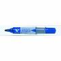 Unik whiteboard marker med Pilots kendte V-system samt den nye TPF teknologi, hvilket g?r at markeren skriver med det samme. Meget synlig og klar streg. Med refill for mindre belastning af milj?et. Med hurtigt?rrende, lugtsvag, alkoholbaseret bl?k uden skadelige opl?sningsmidler. Let at fjerne fra tavlen. Konisk spids. Hylsterfarve: bl? Skrivefarve: bl? Spids diameter: 2,3mm Pakket ?: 10 stk. i ?ske