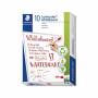 Lumocolor whiteboardmarker med DRY SAFE blæk. Kan ligge uden hætte i flere dage uden at tørre ud. Er hurtigtørrende og lugtfri.