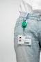 Beskrivelse af Yoyo-holder style Yoyo-holder med metalkrog, velegnet til navneskilte og kortholder med hul.